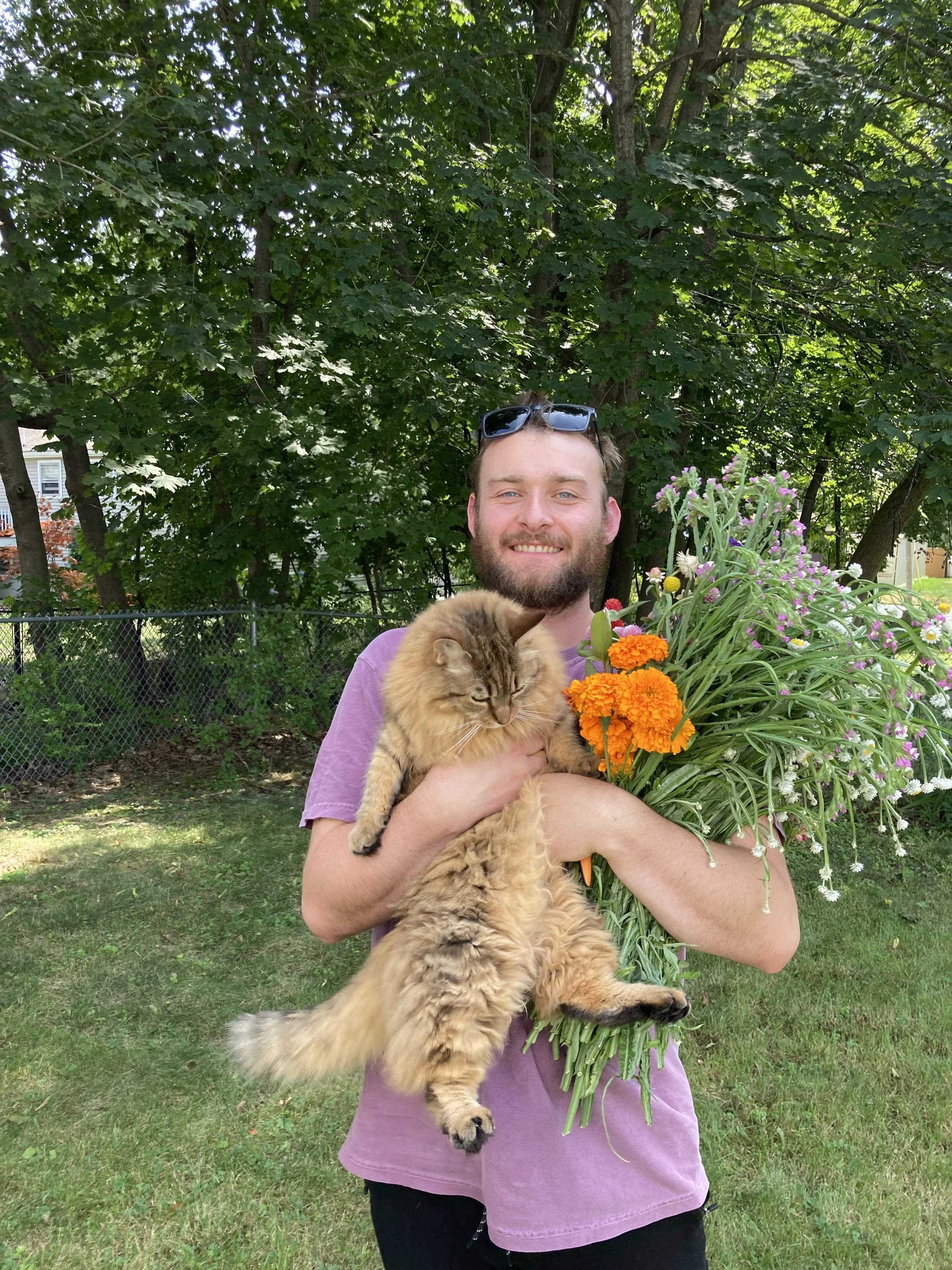 My name is Luke and I started Barn Cat Flowers in 2022 in Bowdoinham, ME. In 2023, I moved to Portland and grew more flowers, making dried wreaths and selling at a few holiday makers markets. In 2025, I started working for Dancing Harvest Farm in South Portland, owned by my friend Daniela. In 2026, I will be leasing some land from her and launching a fresh flower CSA for the first time!